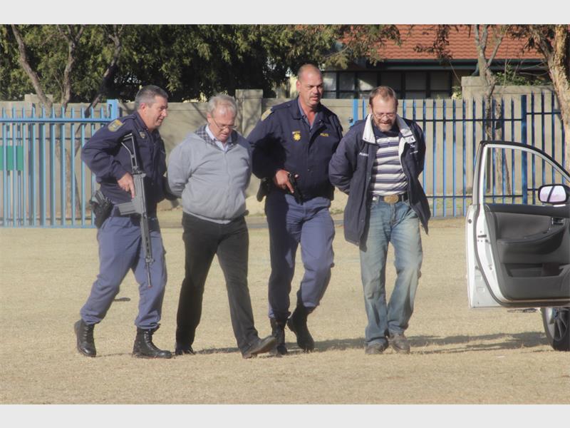 The police chased after the suspects with guns and apprehended them to the delight of the pupils.