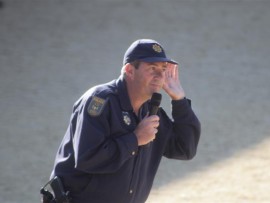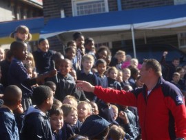 After the mock celphone robbery, Warrant officer Tobie Holland spoke to the pupils about not trusting strangers as they want to harm them, how to deal with bullies at school and not to take things that do not belong to them.