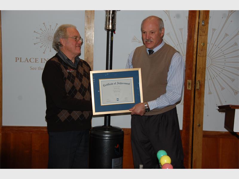 Area director Robert de Kramer was proud to present Tim Knights, a distinguished Toastmaster since 1995 who has been the longest serving member of the club (since 1984) with a certificate of achievement in recognition of the club’s 40th anniversary, on behalf of Toastmasters International.