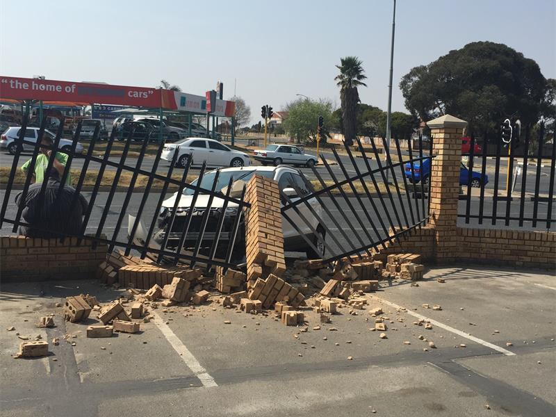 At Sunday at about 1pm there was once again an accident where a vehicle crashed into the boundary wall on Ontdekkers Road. According to Lucinda Koekemoer, who spoke on behalf of management, this was the third accident in one week. She estimates that at least one accident takes place every week.