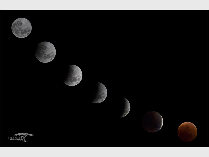 The picture displays a series of eight photographs he took over three hours which shows the progression of the lunar eclipse.