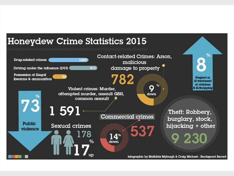 A shocking 13 959 crimes committed in the Honeydew Precinct to date.