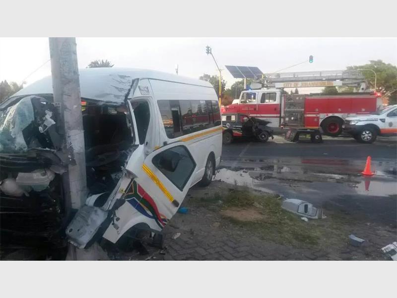 The accident took place at about 6am this morning at the intersection of Ontdekkers Road and Gordon Road. According to the passengers the taxi driver allegedly skipped a red traffic light. Emergency services had to treat 14 of the taxi’s passengers on the scene.