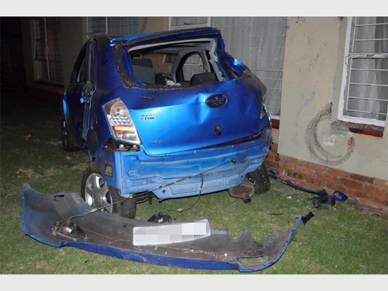 On Saturday at about 6pm it went awry for one such young driver. Sarel van der Walt said he and his wife went for a walk when they saw a vehicle speeding in the direction of their house. When they returned they found the vehicle went through their palisades and ramped into their house. Van der Walt said the driver did admit to drinking and a liquor store slip was found in his vehicle. He also said the vehicle must have been doing over a 100km/h in the 60km/h zone.