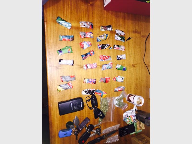 Acting on an anonymous tip-off the police and CPF went to a house in Hull Street. The house was raided and 132 packets of dagga were found. Two people were arrested.