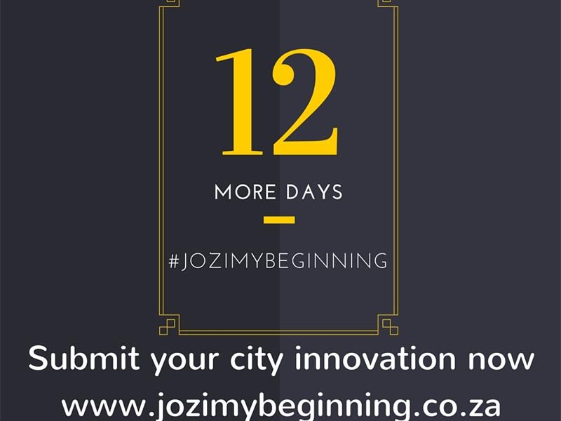The deadline for submitting an idea is 11 November 2015 at 12 noon. Entry forms can either be completed online at https://www.jozimybeginning.co.za/ or fetched from and submitted to the Region C office. Certain funded projects could also be considered to be proofs of concept for new ways to deliver municipal services. On that basis, implementers could later compete in the market to supply the innovation to the City of Johannesburg (CoJ) via an open tender.