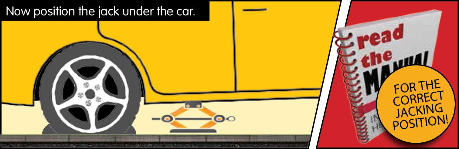 Locate the Pinch Flange – this is the part of your car where the jack should be placed, to avoid damage to your vehicle. This is usually a flat space along outside, underbelly of your car.
