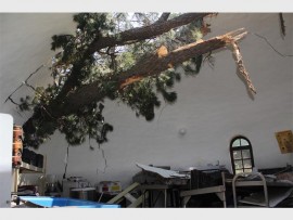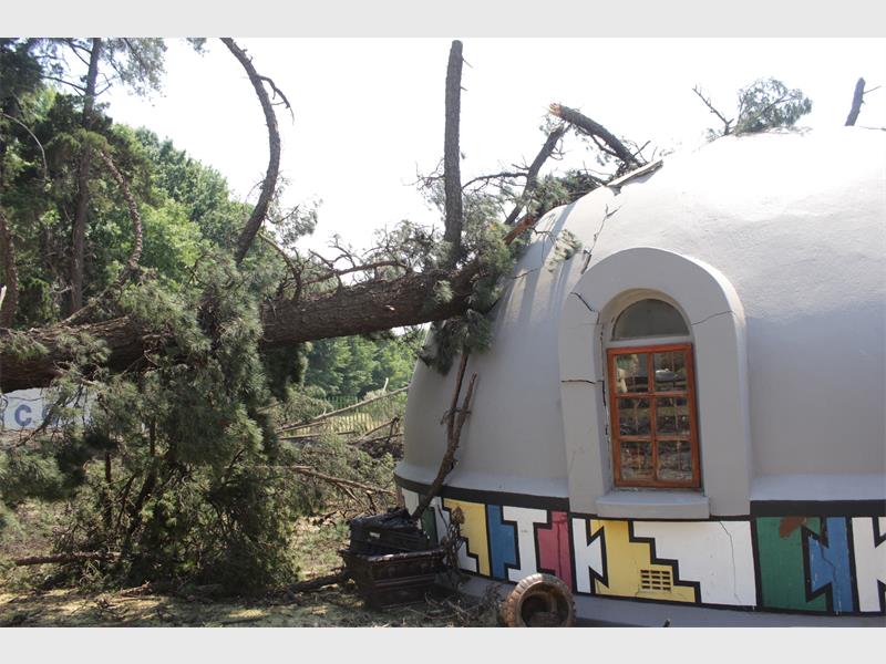 “The trees are old and don’t have a strong hold in the ground. The trees remaining are already leaning and will fall over any day. We appeal to anyone who can help to remove the trees and repair the damaged building.