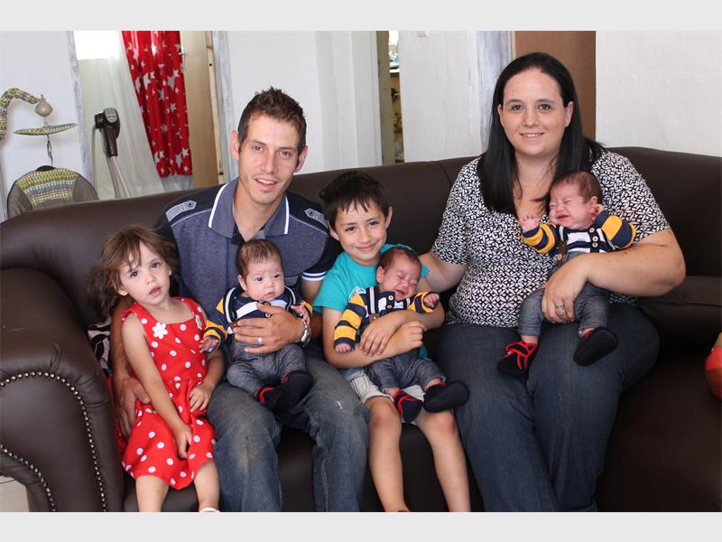 The Aspelings welcomed Daniel Scott, Ryan Ronald and Luke Leonard into the world on 27 August. They were born prematurely, at 31 weeks, because the umbilical cord was detaching from Daniel, not allowing him access to oxygen and nutrition. An emergency cesarean had to be performed at Life Wilgeheuwel Hospital, Louise said, but she was glad to get rid of the immense pressure on her body.