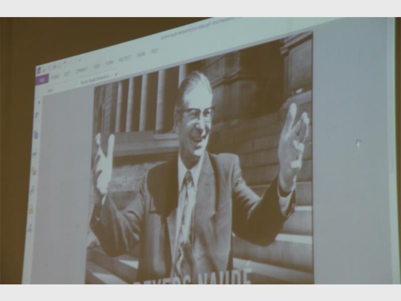 The keynote speaker who delivered the lecture on the man fondly known as Oom Bey, was Professor André Bartlett of the theological Faculty of University of Pretoria and former Pastor of the Dutch Reformed Congregation Aasvoëlkop. Bartlett painted a moving picture, often with humour, of the struggle hero who was demonised by his own people but later in the New South Africa vindicated.