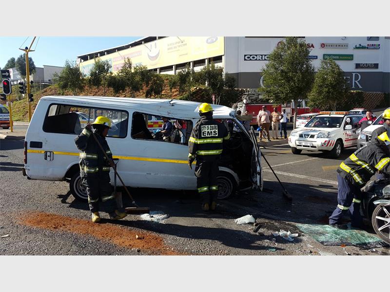 18 people were injured this morning in a collision between a taxi and a bakkie on Hendrik Potgieter Road close to Clearwater Mall.