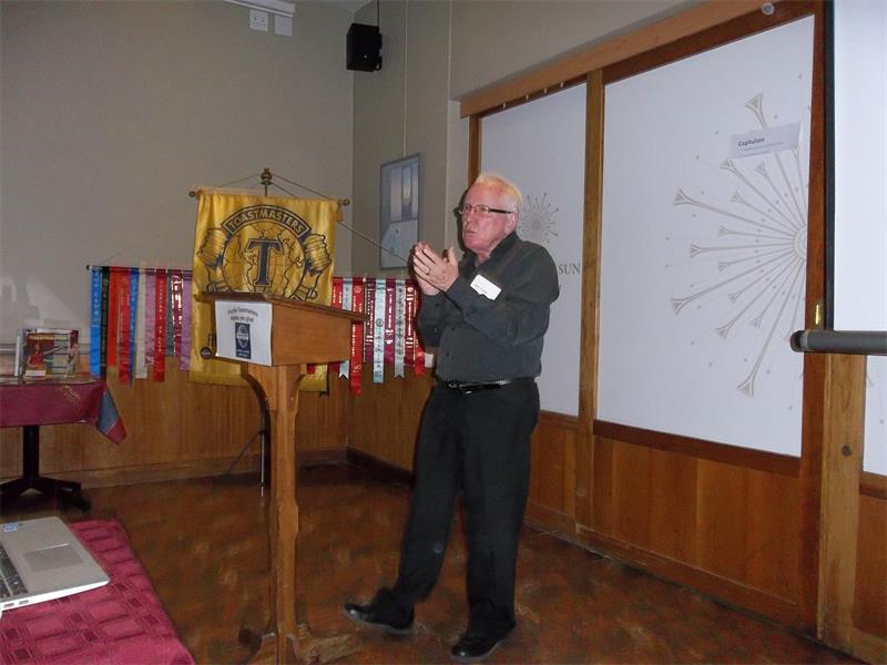 Toastmaster Johan Herman captivated listeners with his ice breaker speech entitled “The story of my life”. Herman has a passion for law and talking, and maintains the best part of being a public prosecutor is representing victims, your purpose being to seek justice for them. The downside is not every perpetrator is convicted.
