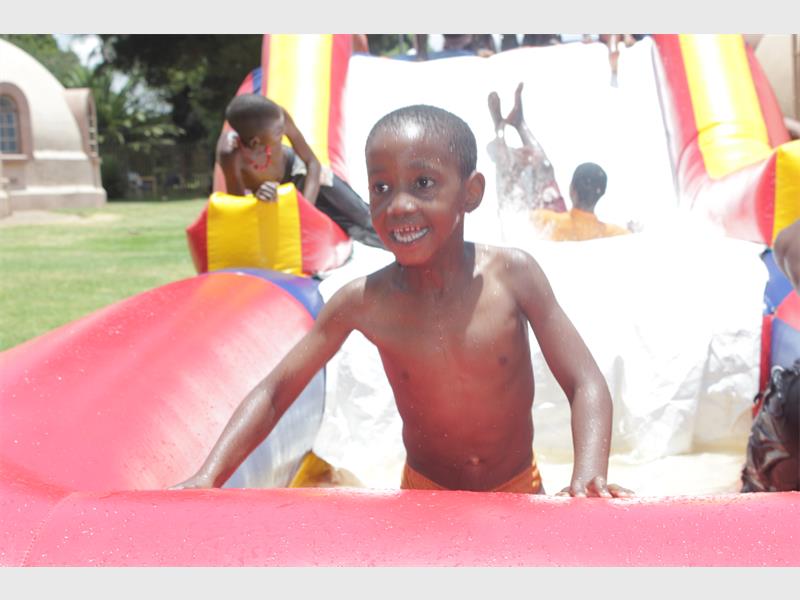 The theme of the party was Carnival Day, from slides and popcorn machines to candy floss and water slides, the children thoroughly enjoyed the day.