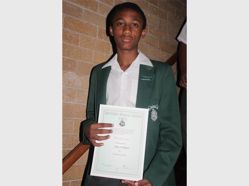 Elijah Bord was given the Lendrum Trophy for Loyalty to the school while Beyonce Minnaar was given the Ross trophy for Outstanding Personal Development.