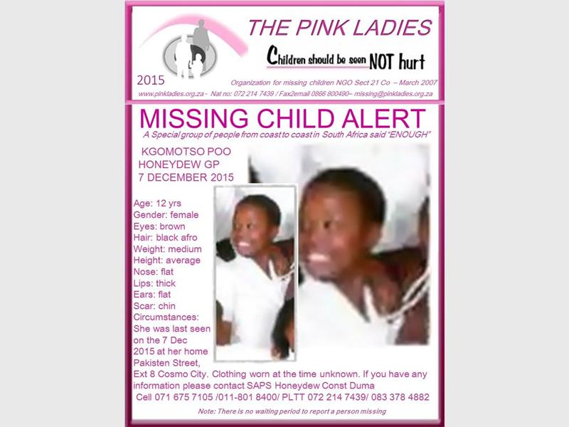 The first is 12-year-old girl, Kgomotso Poo, who has been missing since 7 December.