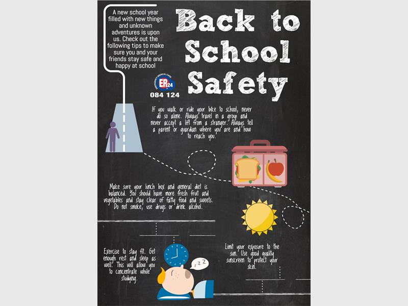 With just a week before the school open for the year, ER24 released some handy tips both pupils and parents to bear keep health and safety in mind.