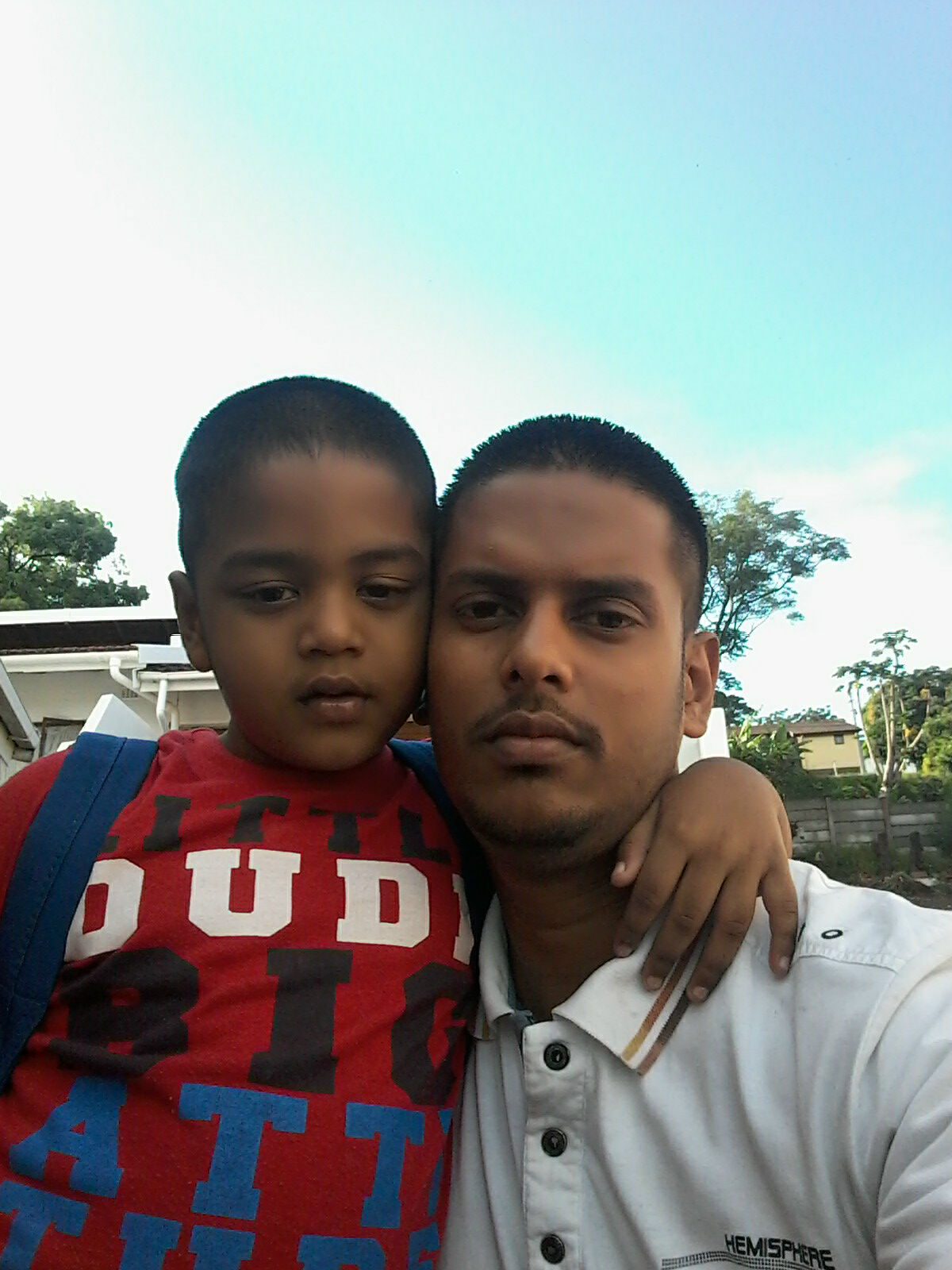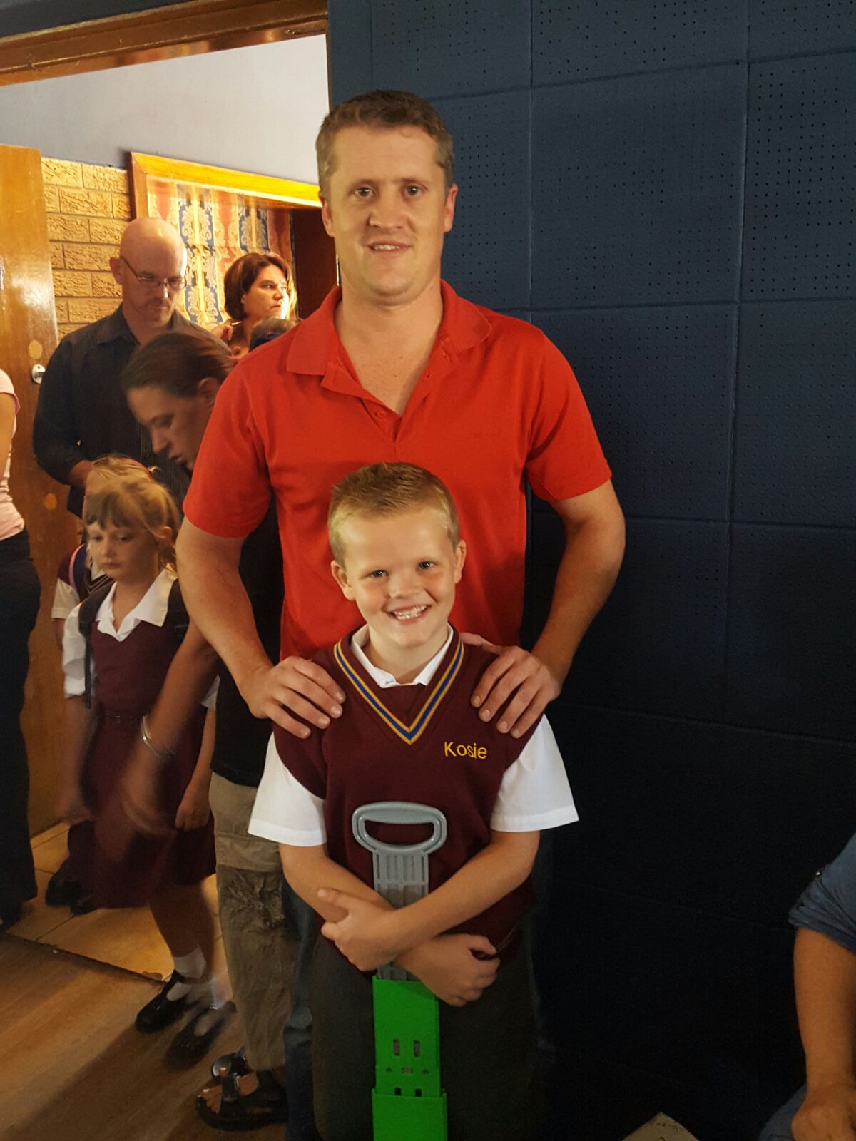 Priyen and dad Laurens on his first day at school in grade R.