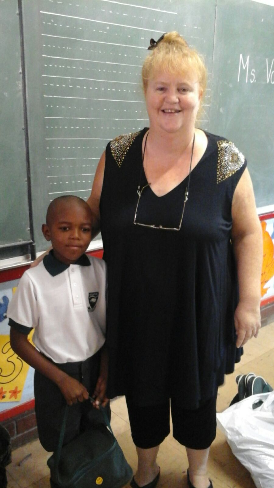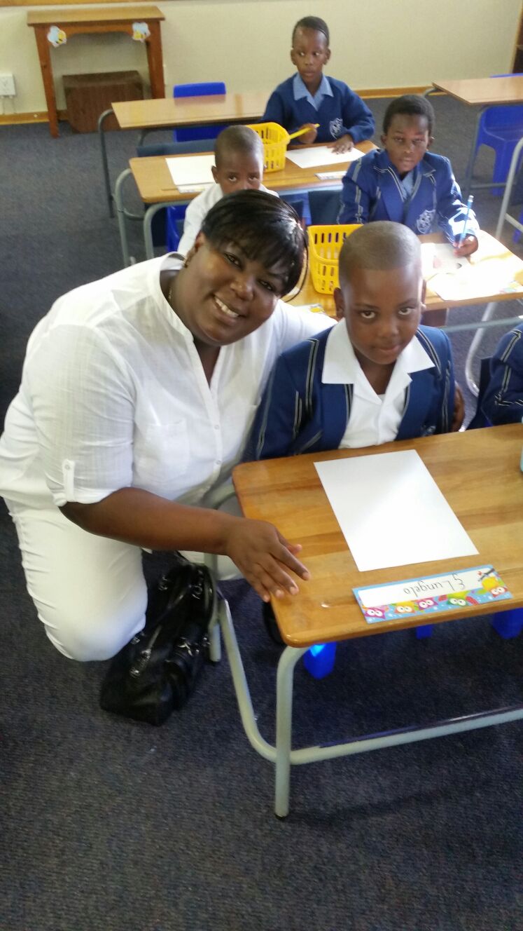 Siyanda with his grade 1 class teacher Ms Van Blek, KZN.