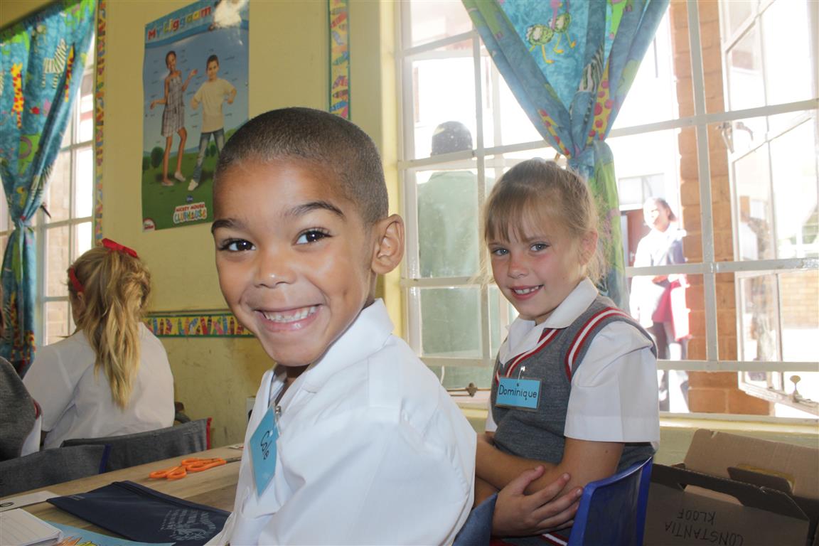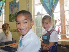 Constantia Kloof Primary School grade one pupils Dominique Branders and Cale Firmin have become fast friends. Photo: Sonwabile Antonie.