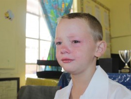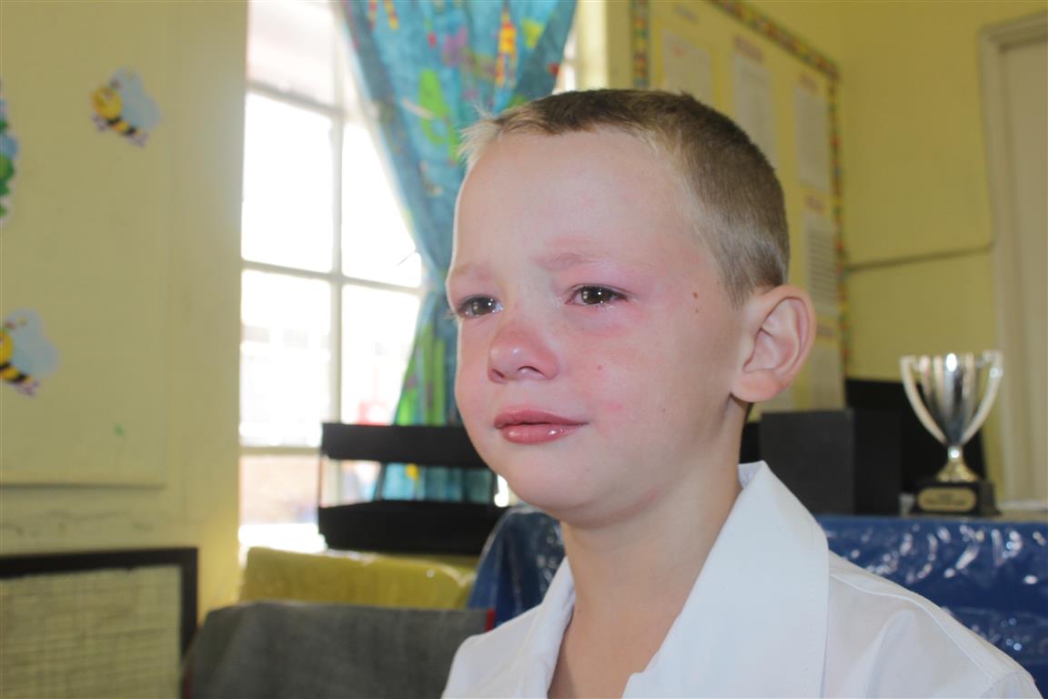Constantia Kloof Primary School grade one pupil Dylan Glover was having none of it this morning as he cried for his mother. Photo: Sonwabile Antonie.