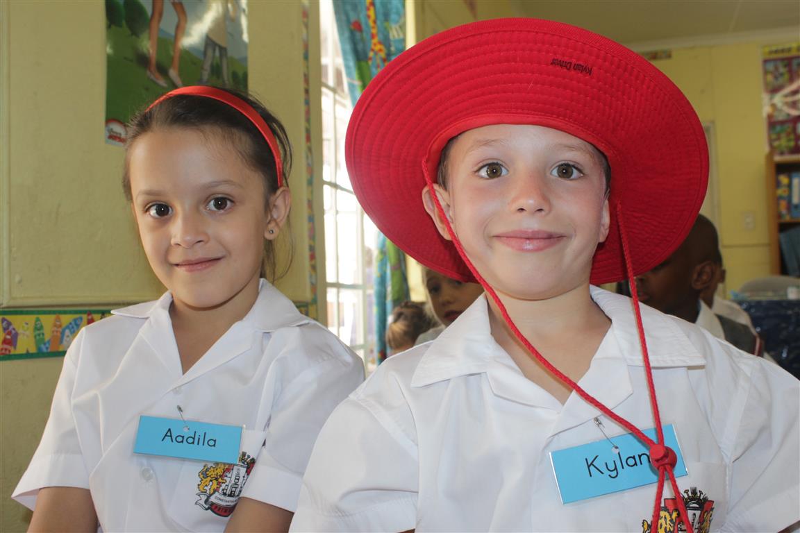 Constantia Kloof Primary School grade one pupils Aadila Baderdien and Kylan Driver. Photo: Sonwabile Antonie.