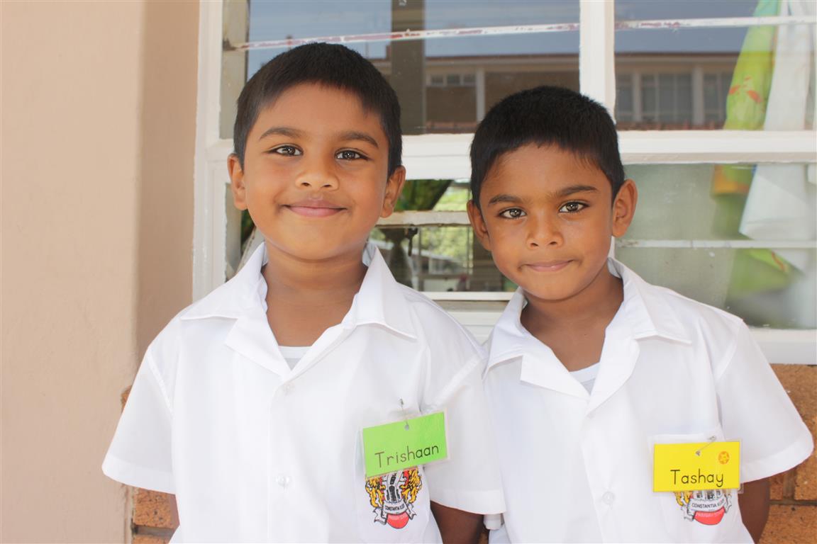Constantia Kloof Primary School grade one twins Trishaan and Tashay Maharaj. Photo: Sonwabile Antonie.