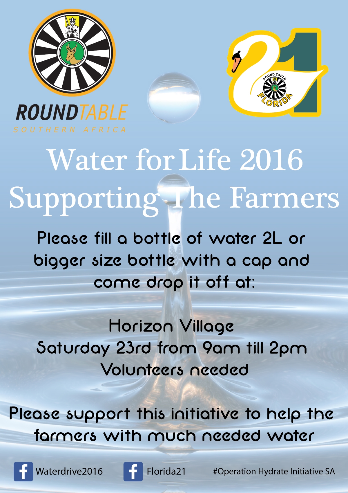 With more than 20 000 litres of water collected two weeks ago, the Round Table Florida 21 is once again hosting a water driver.