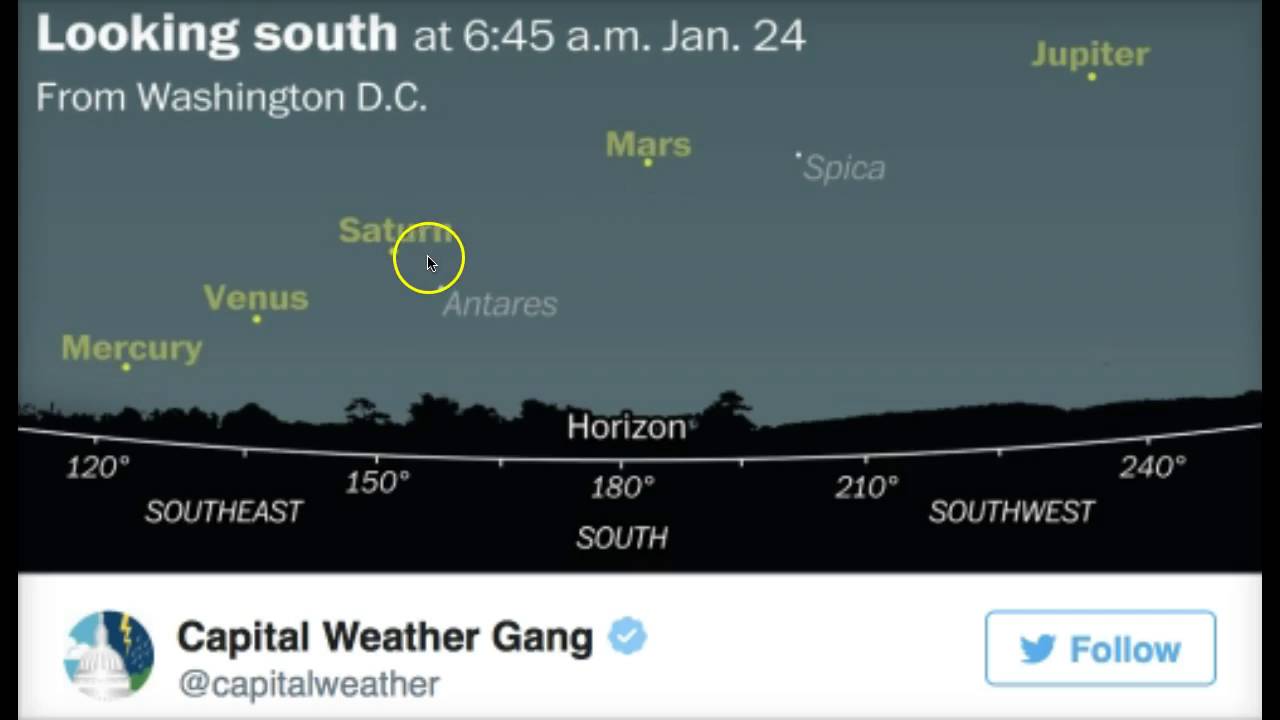 Scientists say the reason for the unusual sight is that Mercury, Venus, Mars, Jupiter and Saturn will be on the same side of the sun at the same time. Because all the planets sit on a single plane, and we’re looking at them from inside that plane, they will all appear to be sitting in a line.