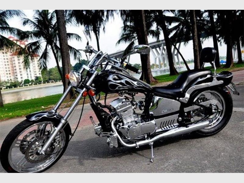 The motorcycle, a Raptor, has some paint damage on the right hand side of the tank and on the exhaust. It is missing both rear indicators as well as one in front. The registration plate is damaged badly and only a piece of it is left on the motorcycle.
