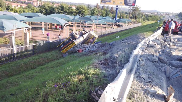 A code 11 cement truck crashed into nine vehicles on the N1 highway near the 14th Road off-ramp this morning.