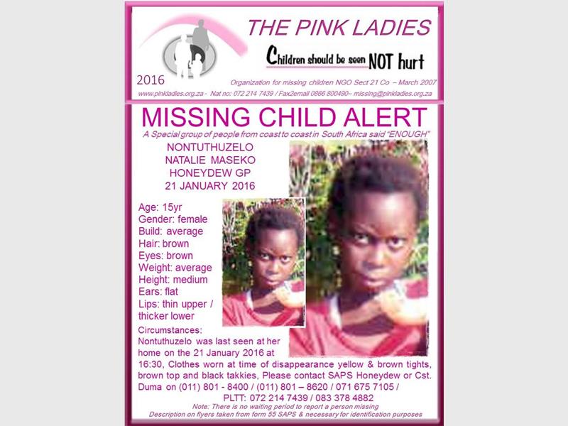Another teenager, 15-year-old Natalie Maseko has been missing from Honeydew since 21 January.