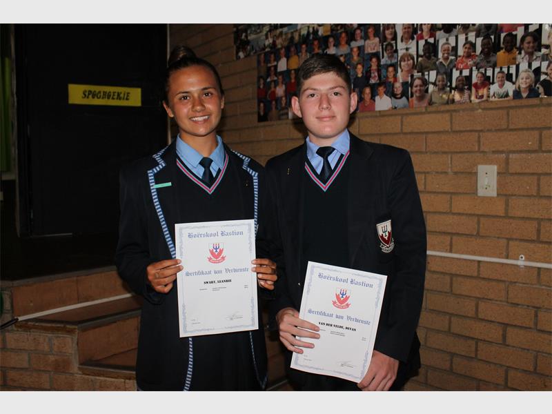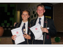 Twee leerlinge het spesiale toekennings in die vorm van erekleure ontvang vir sportprestasies in Desember verlede jaar. Devan van der Velde en Wion Horn het onderskeidelik die o/16 Jukskei Springbok skolespan en die o/19 Jukskei akademiespan gehaal. Devan speel al ses jaar jukskei en Wion het in die afgelope vier jaar jukskei begin speel.