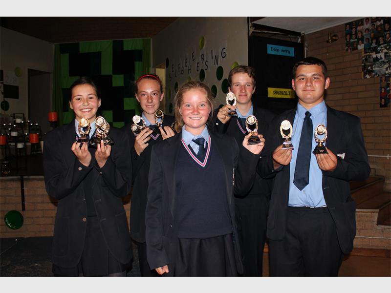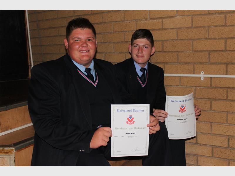 Twee leerlinge het spesiale toekennings in die vorm van erekleure ontvang vir sportprestasies in Desember verlede jaar. Devan van der Velde en Wion Horn het onderskeidelik die o/16 Jukskei Springbok skolespan en die o/19 Jukskei akademiespan gehaal. Devan speel al ses jaar jukskei en Wion het in die afgelope vier jaar jukskei begin speel.