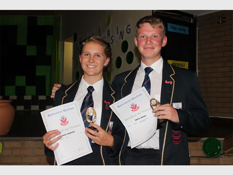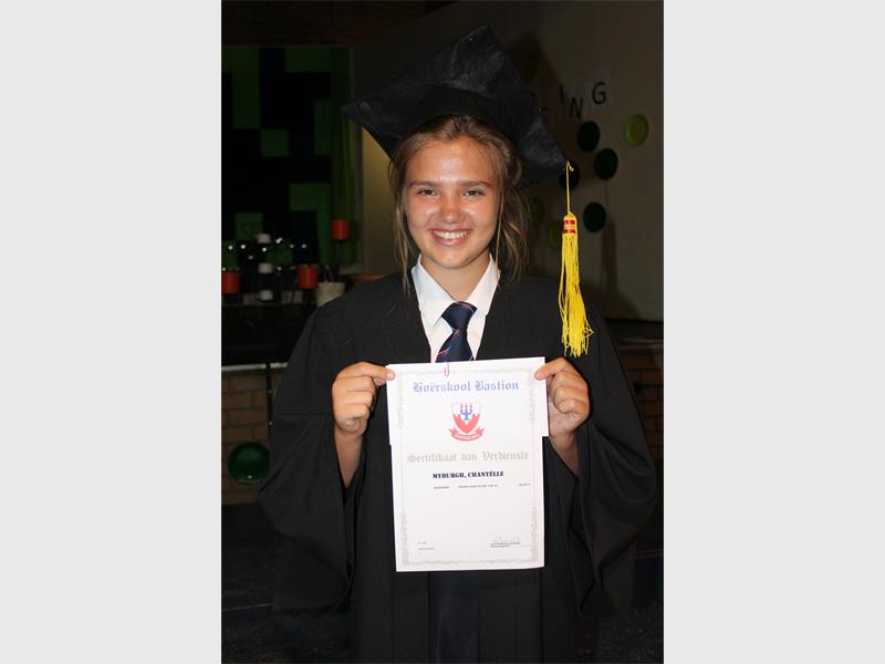 Na afloop van sy toespraak en ‘n pragtige boodskap deur Ds Phillip Voigt is die leerlinge in graadverband vereer. Eers die akademiese sertifikate vir onderskeidings, toe die vaktrofeë is uitgedeel. Die Top 20-akademiese leerlinge van elke graad is aangekondig en só is Bastion se Top 100 leerlinge aangekondig. ‘n Dux-leerling is ook vir elke graadgroep vereer.