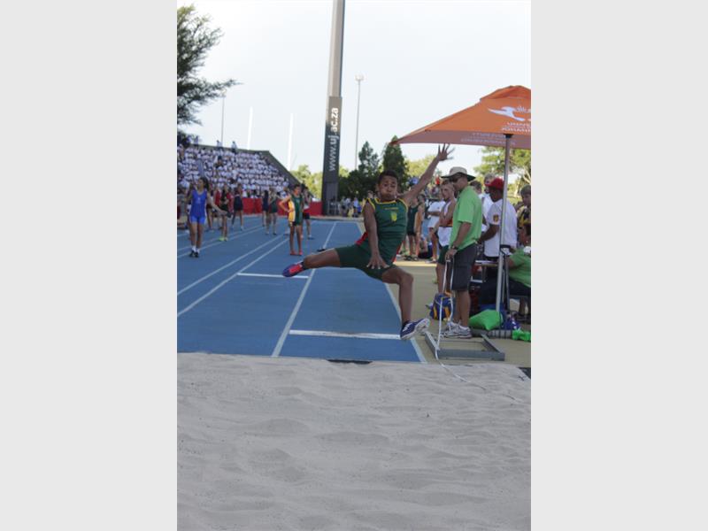 He followed this up with a silver medal in the boys U/16 100m in 11,46 and a third place finish in the boys U/16 long jump with a 6,35m.