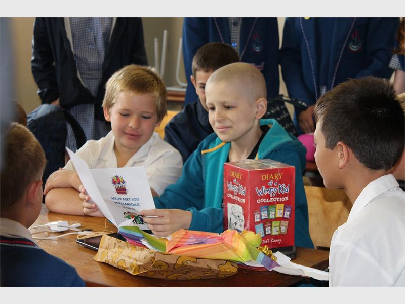 Joshua en sy klasmaats is met kolwyntjies bederf en hy het by die onderwysers, onder andere, ‘n tablet en die Diary of a Wimpy Kid-boekreeks ontvang, waaroor hy baie opgewonde was.