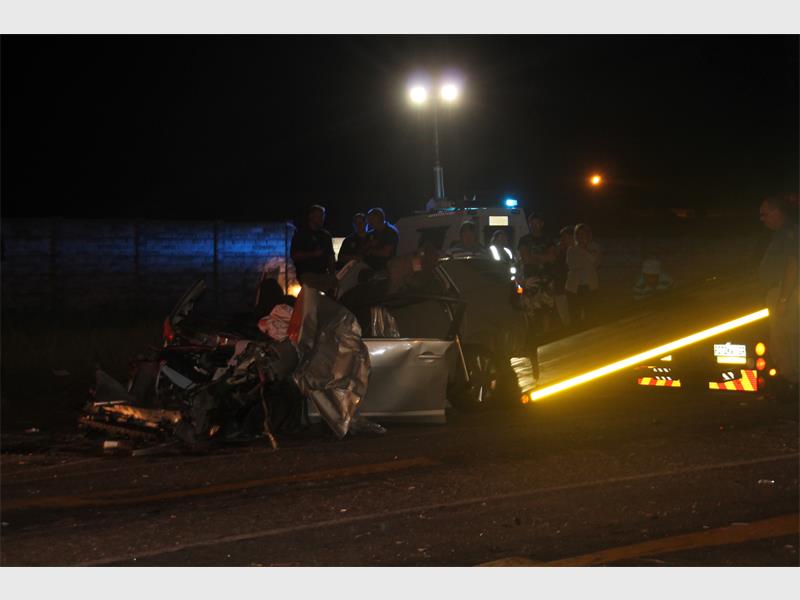 According to sources on the scene the truck was travelling on Albertina Sisulu Road from Krugersdorp when the driver either did not stop or its brakes failed at the Corlett Avenue intersection. The driver of the mangled sedan managed to crawl from the vehicle to the pavement regardless of having a broken leg. Emergency services had to use the Jaws of Life and struggled for more than an hour to free the passenger. She was airlifted to hospital.