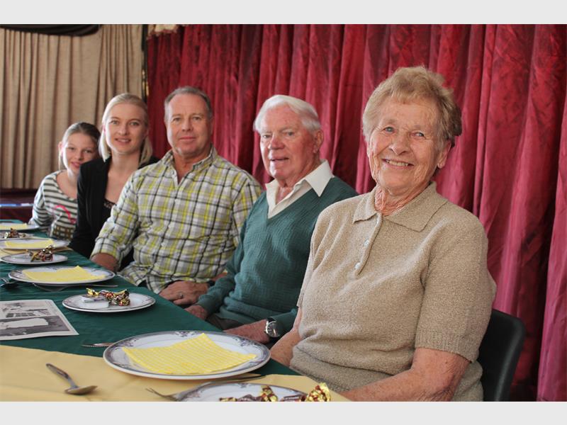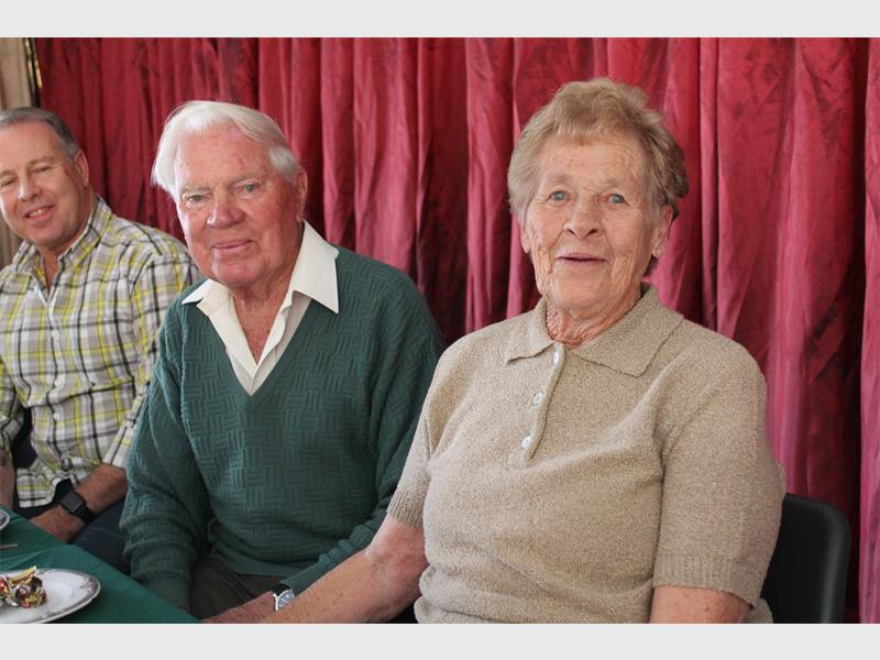 The diamond couple spent the afternoon with 26 of their closest friends and family in the centre’s hall around beautifully decorated yellow-and-green tables. They were welcomed into the hall with Peter Denyssen playing Wagner’s Bridal Chorus (commonly referred to as ‘Here comes the bride’). A lunch of cold meats and salads was served. Their son Grant, his wife Marisa and granddaughter Chanté helped the couple remember that fateful day in 1956 when they exchanged vows, presenting beautiful wedding photos. After Marisa and Grant each made short speeches and shared fond memories, she dedicated a beautiful poem regarding the diamond anniversary to them.