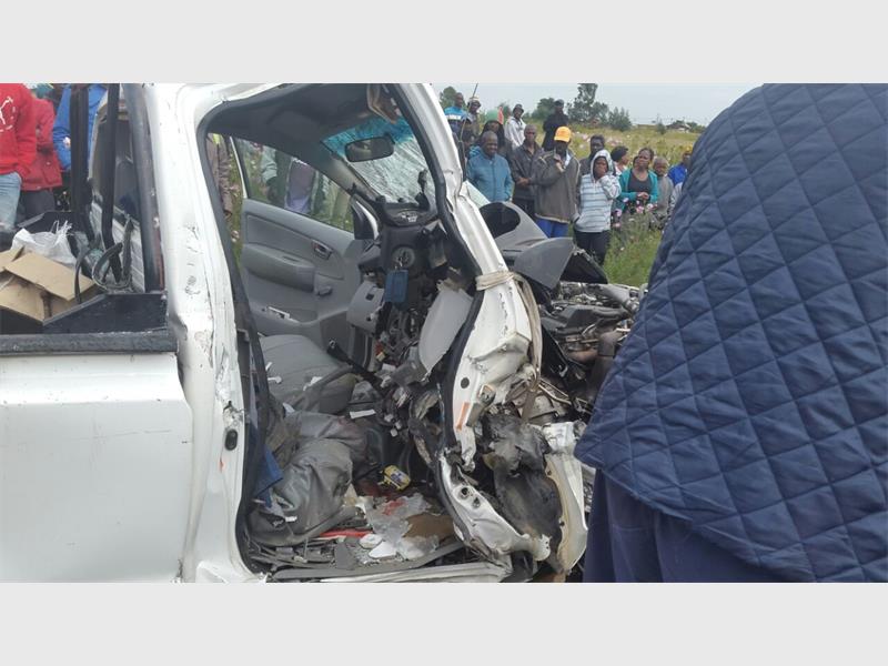 Two people were injured yesterday afternoon, one seriously, after a bakkie rear-ended another on Randfontein Road near Leratong Hospital.