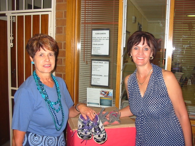 Tekkies wat tydens hul Sevens netbaldag in Februarie ingesamel is het die Kruiners onlangs aan Laerskool Claremont oorhandig.