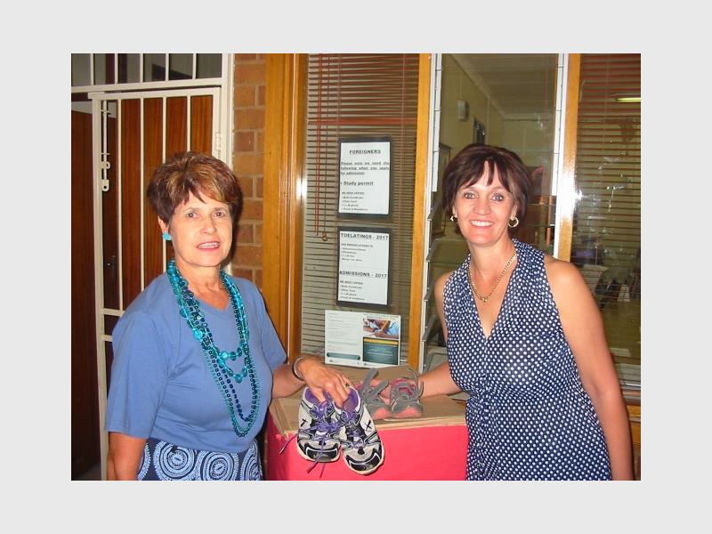 Tekkies wat tydens hul Sevens netbaldag in Februarie ingesamel is het die Kruiners onlangs aan Laerskool Claremont oorhandig.