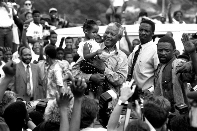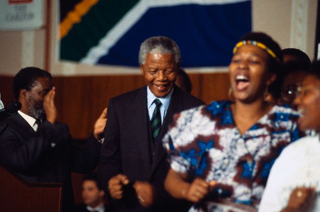 The previous national flag which had flown over South Africa since 31 May 1928 was lowered just before midnight and the new flag was raised. It was flown on a plane across the sky on 10 May 1994 when Mandela was inaugurated as the president. Take a look at pictures from the election campaign and voting day: