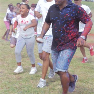 “We started with the Grade 1 pupils running through a guard of honour formed by Grade 7s who threw the powder at them. The distance they had to run around the field was less than a kilometre. Each grade got the opportunity to be in the guard of honour and throw powder, and also be covered in powder. We are so proud of Chloe who has taken on such a huge project and made it a roaring success. The sponsors were incredible and the children would not have had so much fun without all the colour powder they had sponsored,” he said.