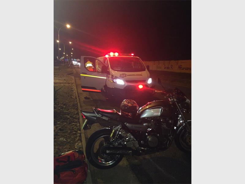 At around 7.30pm last night a taxi and a motorcycle were involved in an accident opposite Tiger Wheel and Tyre on Ontdekkers Road.