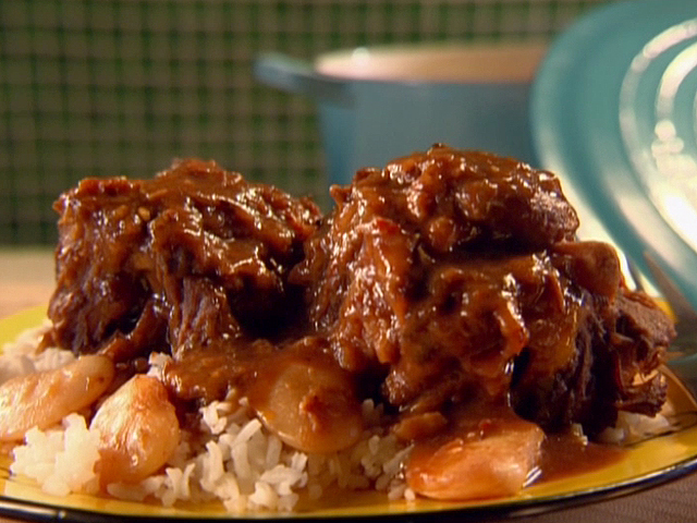 Meanwhile, remove the oxtail from the oven and set aside. Reduce the oven temperature to 170° C.