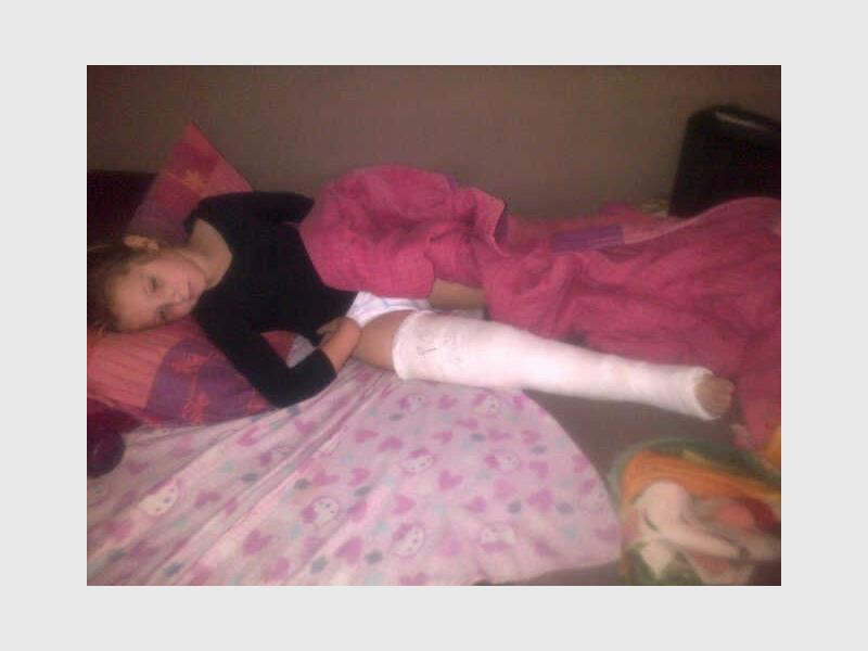 “She was discharged on Saturday and her leg, from top to bottom is in plaster.”