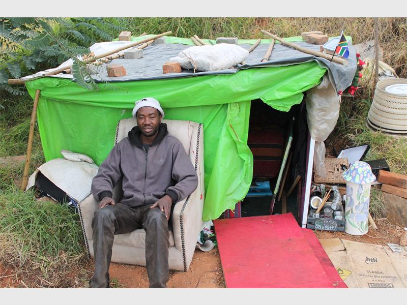 Kgoeli, who is based on the corner of Sandton Drive and Marie Avenue, lives in the adjacent greenbelt in a small shack.
