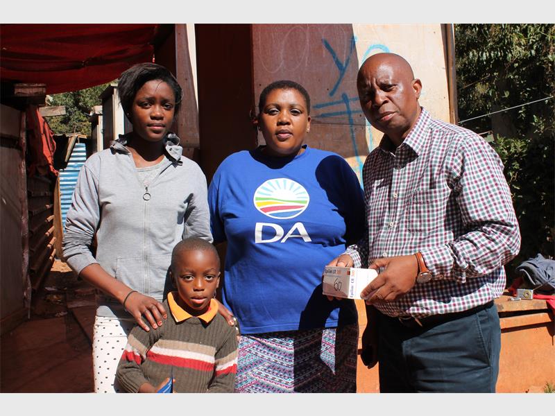 After addressing the people, Mashaba walked alongside a Princess resident, followed by the crowd, who guided him through the settlement and explained various concerns. The concerns included the nearby housing development, which is not yet in use, safety concerns both in terms of the police and emergency services’ lack of access to the settlement and terrible sanitary conditions. He took a look at “pig toilets”, as he referred to the facilities, and met Nomphelo Maziko and her children, Sibonsile, 14 and Mandla, 6. Sibonsile has been unable to attend school for more than two days a week as both children suffer from tuberculosis (TB). Nomphelo explained that her daughter is on medication and her illness is due to their poor living conditions. She also complained that the medicine is scarcely available at local clinics and government hospitals, which is all the impoverished family has access to. Nomphelo doesn’t have a permanent job and does any piece work that comes her way to keep the family afloat.