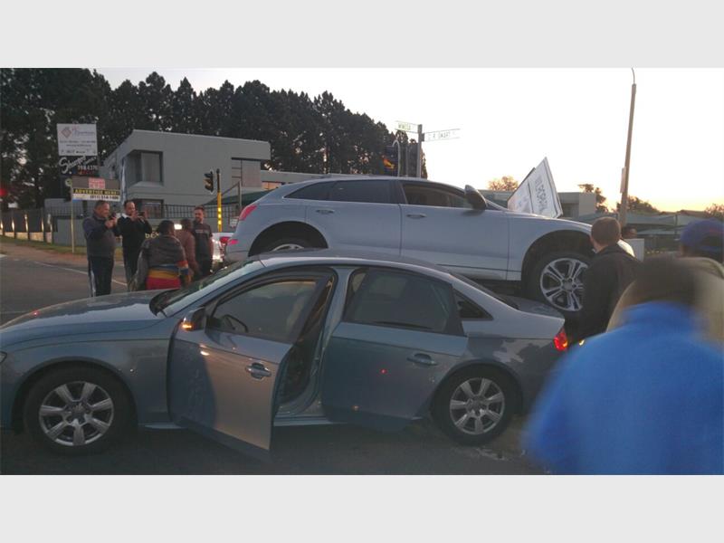 Although the Record could not obtain an official version of what led to yesterday’s (25 May) accident, bystanders alleged that one vehicle skipped the traffic light, crashed into a taxi and then ended up on top of a fourth vehicle after T-boning it.