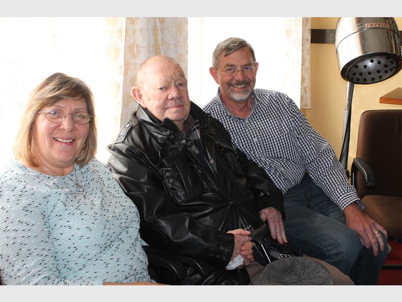Vingo Mitchell from Klein Helderkruin Retirement Village celebrated his 90th birthday with his son Graham Mitchell who flew in from America, and his daughter Jen Rogers.Vingo was form on a farm in Vrede in the Orange Free State and attended a farm school until standard 4 (gr 6). The family moved to Benoni where he attended junior high school and eventually matriculated at a trade school in Krugersdorp. He became a chief estimator for a pipe and boilermaking company known as Hall Longmore. “Some people might remember the steel man that was at Hall Longmore many years ago, that was my creation,” Vingo said.
